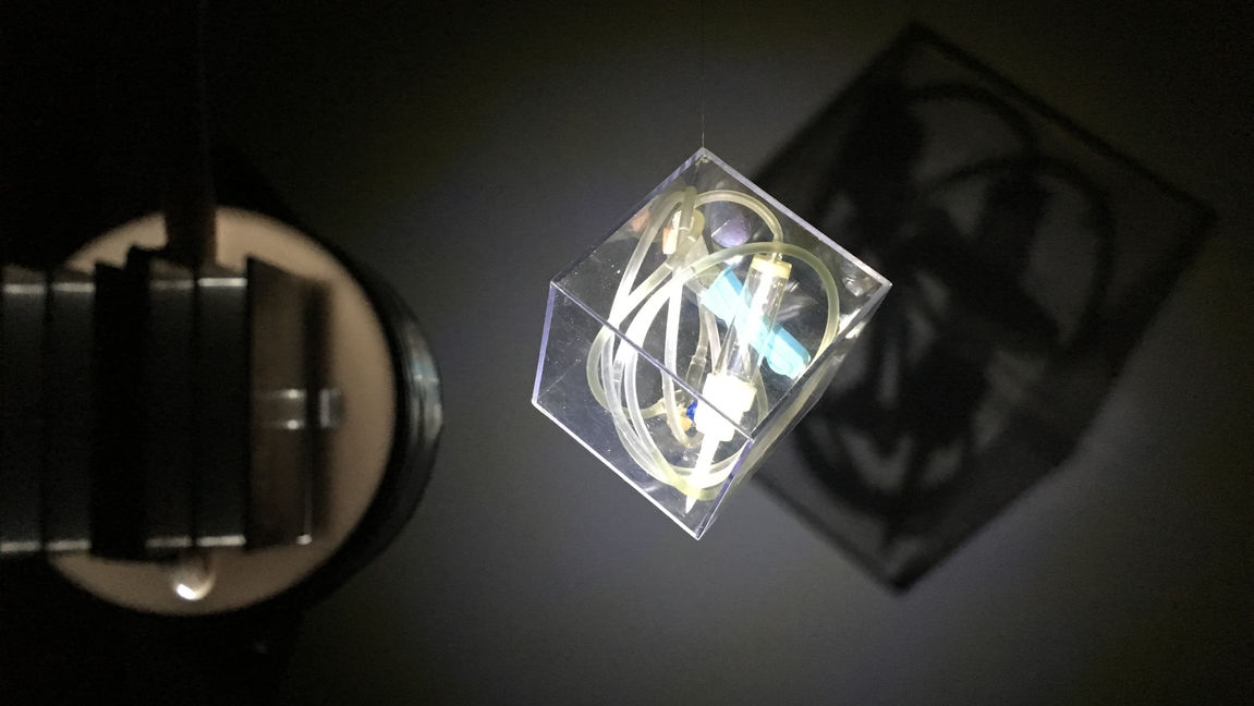 Iceberg es una instalación donde hay tres elementos básicos, tres cubos en acrílico, luz dirigida y audio, que al acoplarse muestran desde una mirada muy estética un asunto algo desconocido para los que no han tenido que trajinar dentro del sistema de salud, al momento de esperar meses para una autorización médica, por que lo que se ve desde afueran no es sino el efecto Iceberg, solo se ve una pequeña parte de lo que realmente ocurre en este convulsionado y alterado sistema, las sombras proyectadas por los cubos en acrílico que contiene algunos insumos hospitalarios (sondas, cánulas y jeringas) hacen que esto se magnifiquen en las paredes, soportado por un audio en el que se escuchan la mayoría de estamentos involucrados en este sistema (pacientes, médicos, administrativos, políticos) presentando quejas, reclamaciones o peticiones a traves de los medios de comunicación que son lo que reportan prácticamente a diario este tipo de noticias, esto convierte el espacio en de anzuelo para que el espectador de involucre con la problemática se esta planteando.
